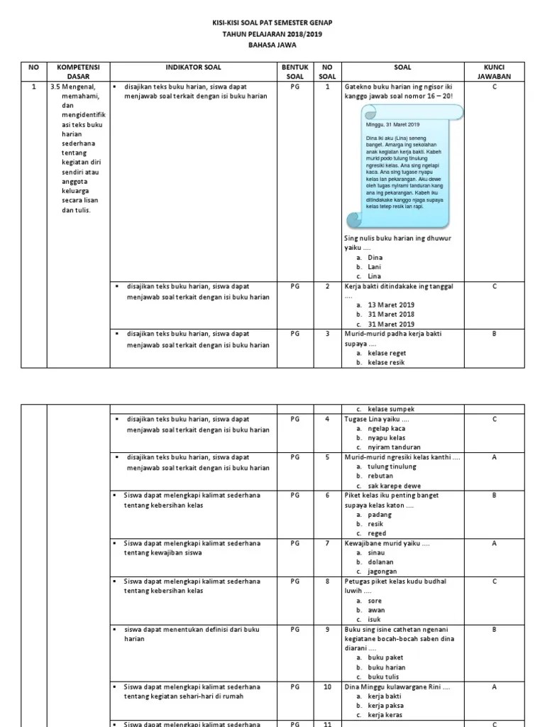 Koleksi soal penilaian harian b. Semoga bisa menjadi bahan belajar untuk menambah wawasan dan latihan. Berikut ini adalah rincian soal uas bahasa jawa kelas 2 sd semester 1. Soal dan jawaban yang dibahas berikut hanyalah sebagai referensi bahan belajar bagi siswa dan guru dan orang tua dalam. Bagi sahabat yang ingin mendapatkan kunci jawaban atau pembahasan bisa melihat video di bawah ini.
