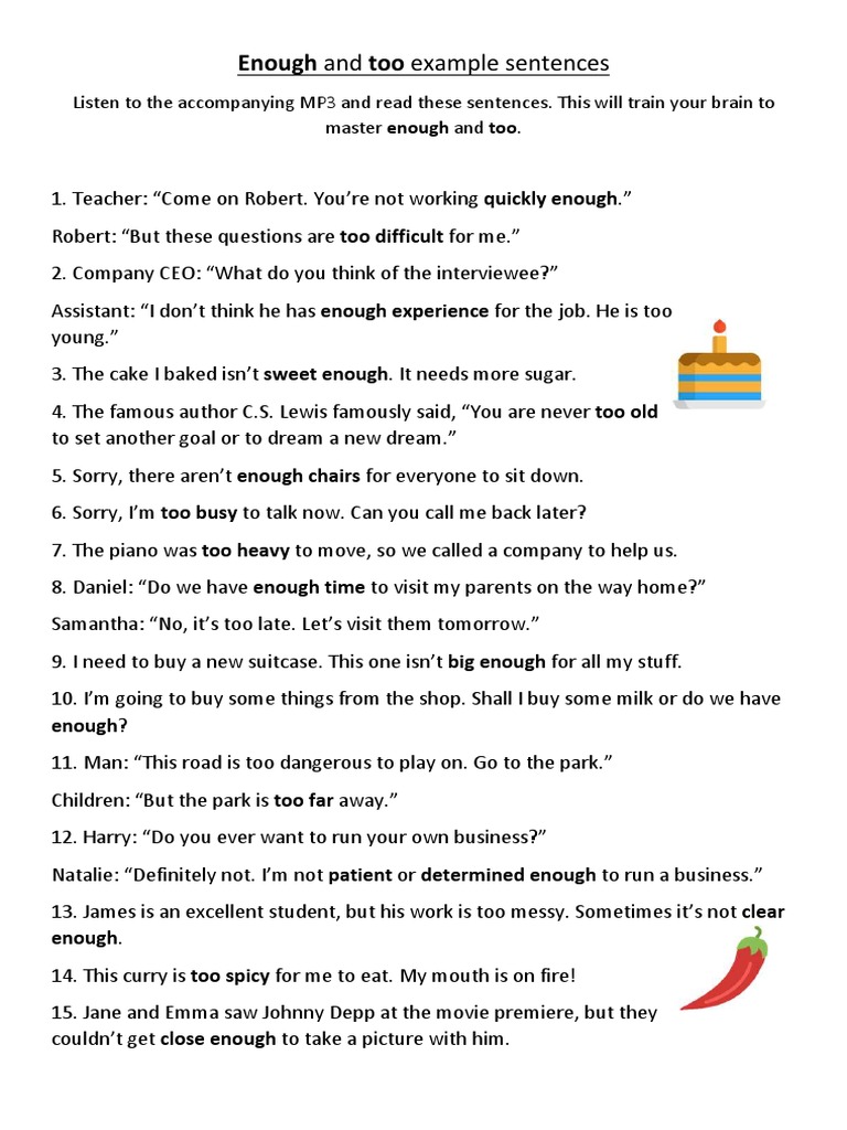 Too dan enough adalah dua jenis kata yang selalu dibahas bersamaan.
