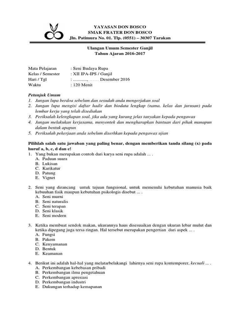 Soal Ulangan Seni Budaya Kelas 12 Semester 1 / Soal Seni Budaya Kelas 8 Smp Mts 2021 Dan Kunci Jawabannya - Check spelling or type a new query.. Check spelling or type a new query. Maybe you would like to learn more about one of these? We did not find results for: Soal ulangan seni budaya kelas 12 semester 1.
